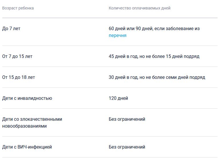 Родители могут оформить больничный, чтобы ухаживать за ребенком, пока ему не исполнится 18 лет. Возраст ребенка и вид лечения влияют только на сумму выплат по больничному и продолжительность оплачиваемых дней.